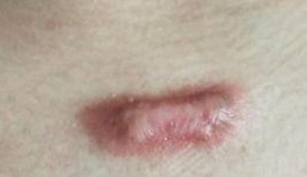 • 表现:疤痕红肿、质地坚硬,高出皮肤表面,可能伴随疼痛或瘙痒。