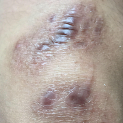 表现:疤痕隆起、发红、瘙痒,范围可能扩大。