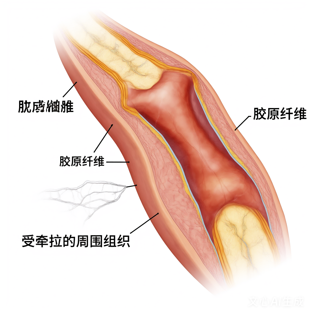 肌成纤维细胞的异常收缩:损伤后,成纤维细胞转化为肌成纤维细胞,这类细胞具有收缩功能,在修复过程中持续收缩创面。若收缩过度,会导致皮肤紧绷、关节挛缩,甚至牵拉周围正常组织变形。